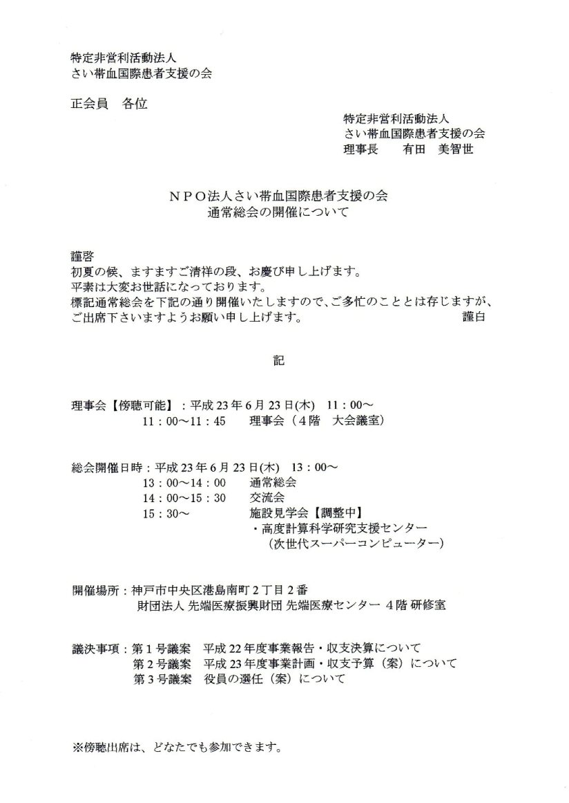NPO 法人さい帯血国際患者支援の会 E-mail : info@ptsupport.net